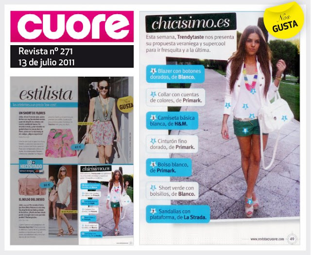 Hola a todas! Os escribo para contaros algo que me hace muchísima ilusión. Esta semana en Cuore (edición papel) han publicado uno de mis looks (Summer Smell) en la sección «Somos Tu Estilista». Además tengo justo al lado a Olivia Palermo, una de mis musas. La verdad es que estoy contenta y muy emocionada. Quería daros las gracias a todas, porque con vuestro interés y vuestro apoyo parece que, aunque llevo con el blog poquito tiempo, va funcionando genial. ¡Os lo dedico!