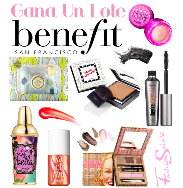 ¡Hoy una sorpresa muy especial! Tenía un montón de ganas de contároslo. Gracias a este concurso de Fashion Salade podéis ganas un súper kit de cosméticos de la marca americana Benefit. Me encanta no sólo porque los productos son estupendos, sino que además el diseño de cada uno es súper bonito y original. (Perfecto para los regalitos de Navidad)